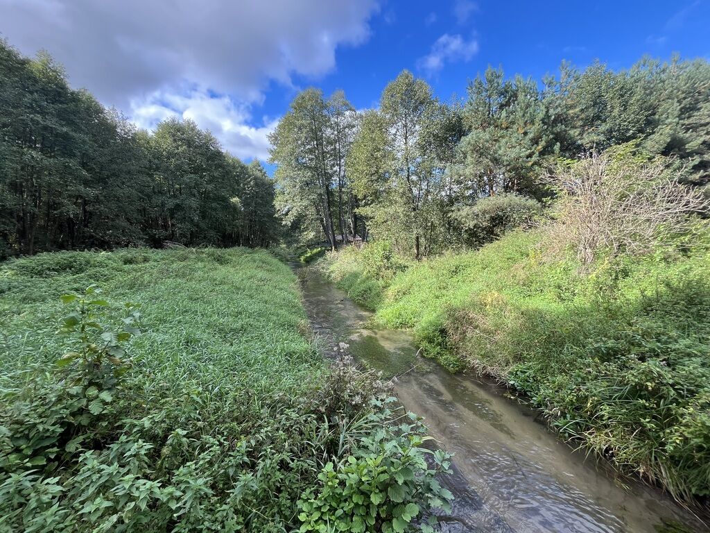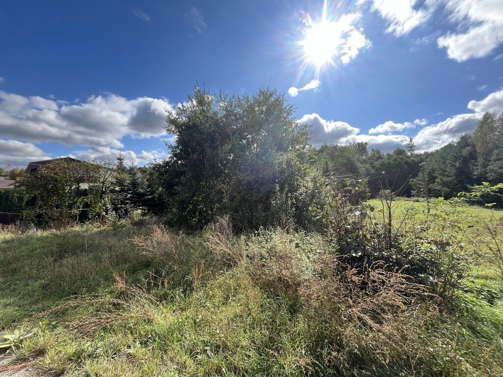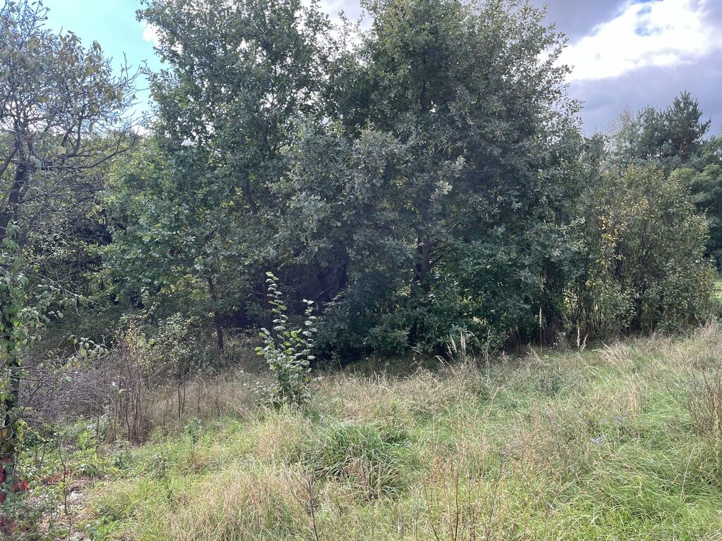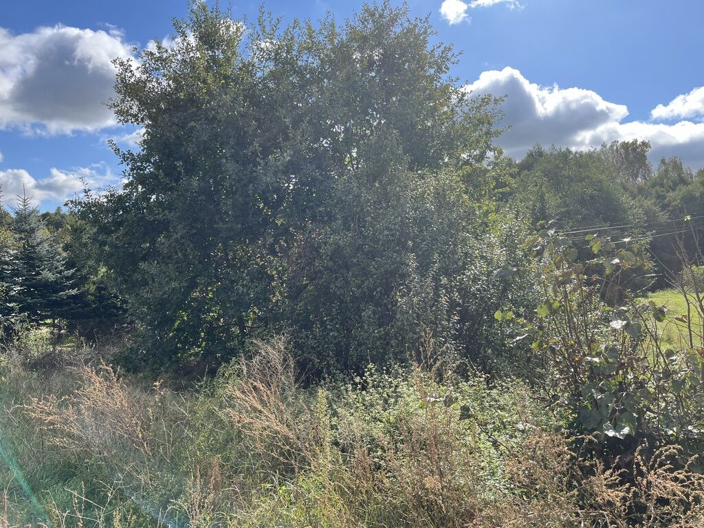 -działka niezabudowana porośnięta drzewami i krzewami. Lekko